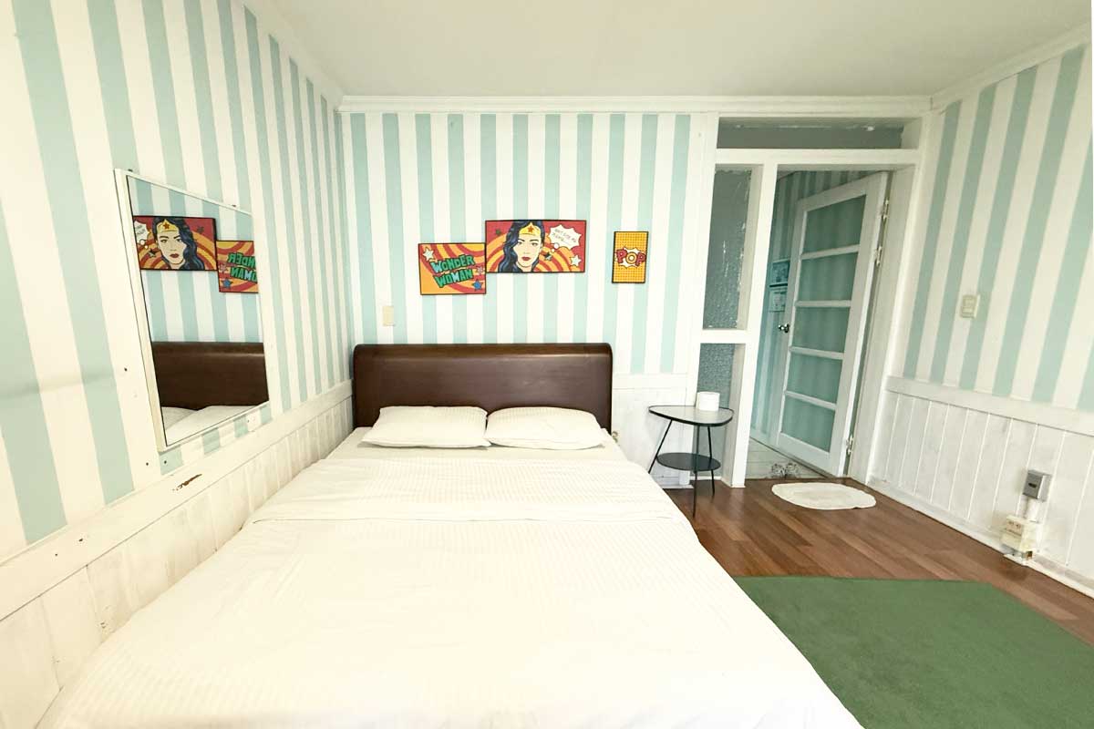 구비시설 TV(넷플릭스, 유튜브),침대,식탁,에어컨,냉장고,드라이기,취사도구,전기밥솥,전자레인지,핫플레이트,인터넷,객실샤워실,세면도구,난방,화재 경보기,소화기,커피 메이커,욕실용품